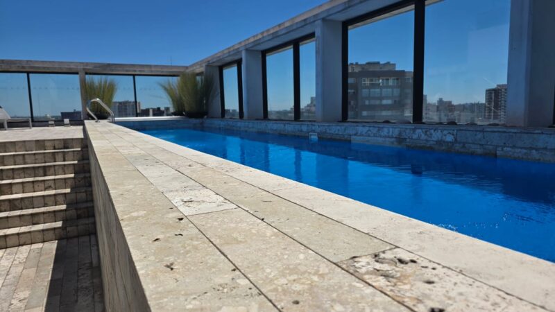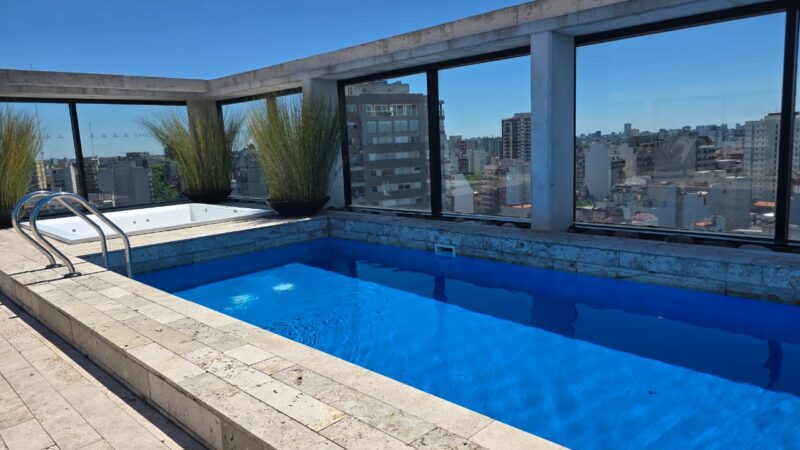 – PISCINA DESCUBIERTA CLIMATIZADA EN PISO 15 CON SOLÁRIUM Y JACUZZI.