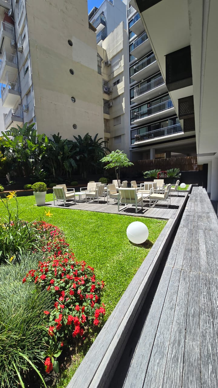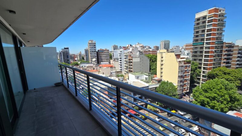 Excelente departamento de 2 ambientes al frente, en destacada torre Evoque Olazabal, ubicada en el noveno piso al frente con espectacular vista abierta. (AMUEBLADO)
