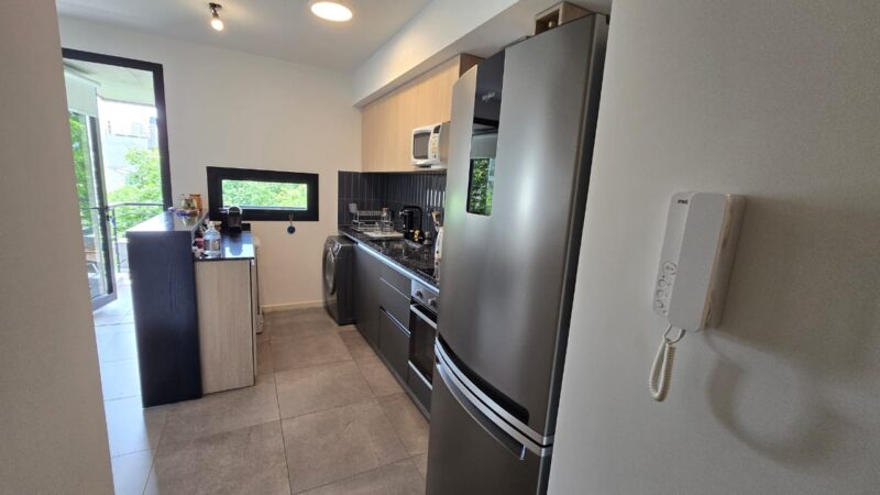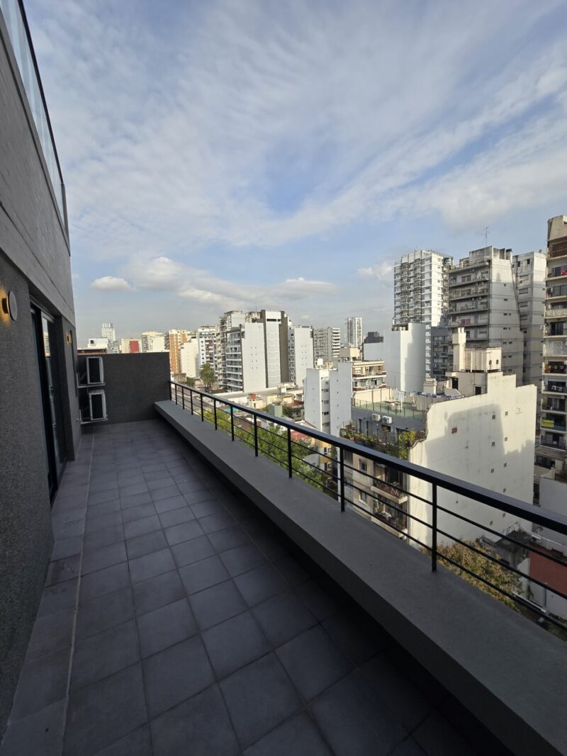 Balcón Aterrazado con acceso desde cocina o Living comedor , excelente vista abierta, este también cuenta con conexión para Lavarropas.